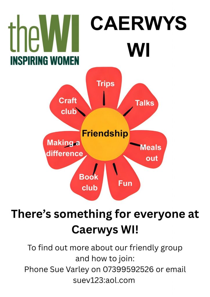 Caerwys WI meets usually on the second Monday of the month at 7.30pm in the Town Hall